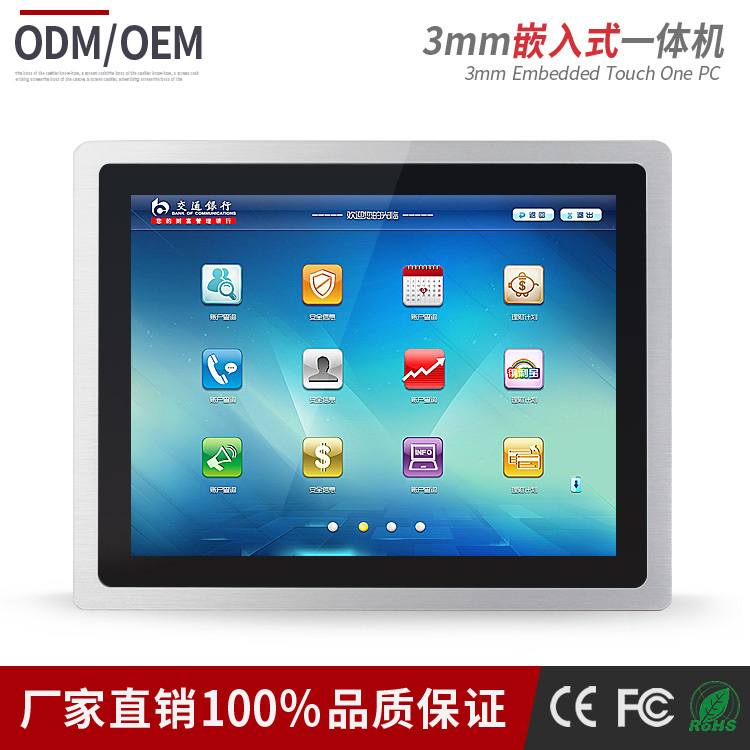 ? ? ? 智能工業(yè)平板一體機(jī)外殼采用鋁合金材料,鑄模沖壓,陽(yáng)極氧化,拉絲工藝制作而成,致使面框厚度達(dá)到3mm,面板無(wú)縫隙純平顯示設(shè)計(jì)達(dá)到IP65要求;內(nèi)部集成X8架構(gòu)Intel Baytrail平臺(tái)工控主板(自主開發(fā))、固態(tài)硬盤內(nèi)存、工業(yè)高清液晶屏及十點(diǎn)電容觸摸屏等主要部件,它具有精美輕巧,防塵防水,堅(jiān)固耐用、安全穩(wěn)定,操作方便等特點(diǎn)。
