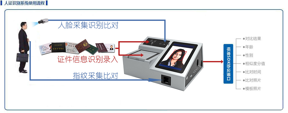 近幾年來,社會環(huán)境日益復雜,治安、刑事犯罪時發(fā)生,特別是反社會、反人類的案件逐漸增多。通過安檢發(fā)現(xiàn)身份異常、提前處置比事后處置效率要高的多。犯罪嫌疑人大多有反刑偵行為,經常故意隱藏真實身份。例如:使用假身份證。所以在安檢口需要快速判斷核查人員所持有的身份證是否本人的證件,人證合一的認證非常重要。
