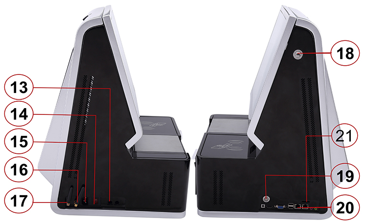 1、觸摸屏 2、15寸屏3、條碼掃描槍4、證件掃描儀5、IC卡讀寫/身份證閱讀器6、熱敏打印機(jī)7、鍵盤 8、攝像頭 9、鋼化玻璃10、15寸副屏 11、指紋儀