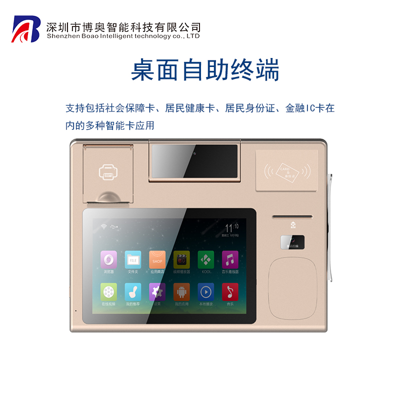 桌面自助終端,是一咱安桌電腦結算一體機,具有"互聯(lián)網+"金融交易功能,作為面向互聯(lián)網行業(yè)應用的一體化設備,結合了身份認證、生物信息采集、網絡通信和移動應用在內的多種技術,支持包括社會保障卡、居民健康卡、居民身份證、金融IC卡在內的多種智能卡應用,可在政務多業(yè)務、集成服務、醫(yī)院、藥店、基層公共社區(qū)、便利店配備,與互聯(lián)網平臺相配合,線上線下、有卡無卡相結合。便民得民的一體代自助服務高端設備。