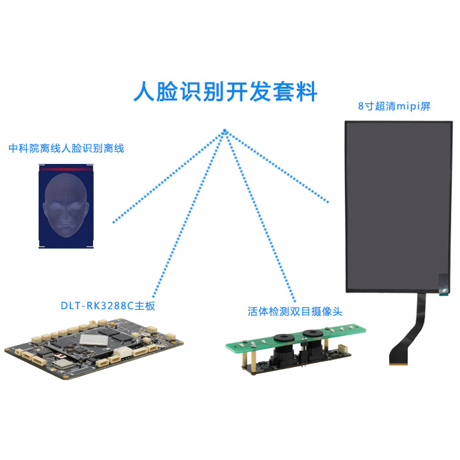 深圳市發(fā)博奧智能科技有限公司推出的瑞芯微RK3288人臉識別開發(fā)套件,是由主板+雙目攝像頭+屏+算法SDK組成(用戶也可灌其他算法,包括百度算法、曠世算法、商湯算法、閱面算法等),標(biāo)準(zhǔn)的安卓5.1操作系統(tǒng),寬動態(tài)活體檢測黑白色彩雙目攝像頭,800*1280高清mipi屏,提供詳細(xì)的底層接口調(diào)用文檔,算法SDK開發(fā)包及demo,便于用戶二次開發(fā),僅需一個套件,一站式提供硬件、軟件、算法人臉識別開發(fā)服務(wù),助力人臉識別產(chǎn)品快速落地。?