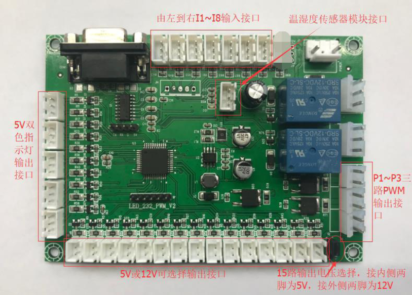 自助終端設備指示燈控制繼電器開PWM功能溫濕度檢測RS232多功能控制模塊