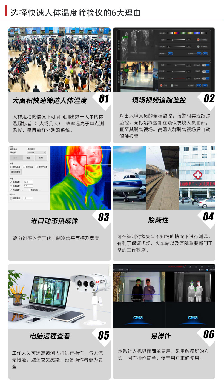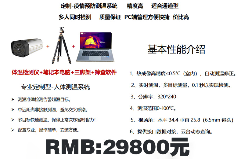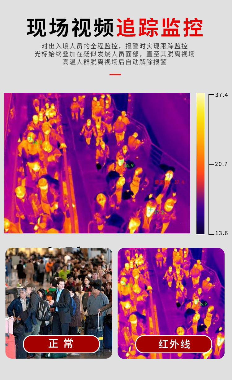 紅外熱成像儀是一款高精度的熱成像,可以實時在線測量目標(biāo)物體的溫度,輸出熱像視頻,查看超溫狀況。搭配不同配套的平臺軟件,適應(yīng)人體測溫篩查,本文檔介紹針對人體測溫篩查使用方式。
