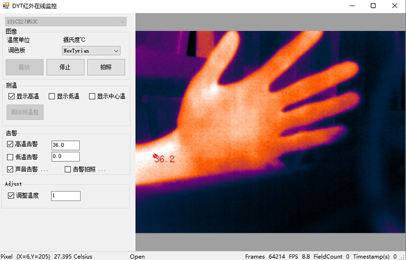 支持超過設(shè)置的門限溫度告警(高低溫均可),可以聲音告警,同時抓拍告警時的照片并存儲。