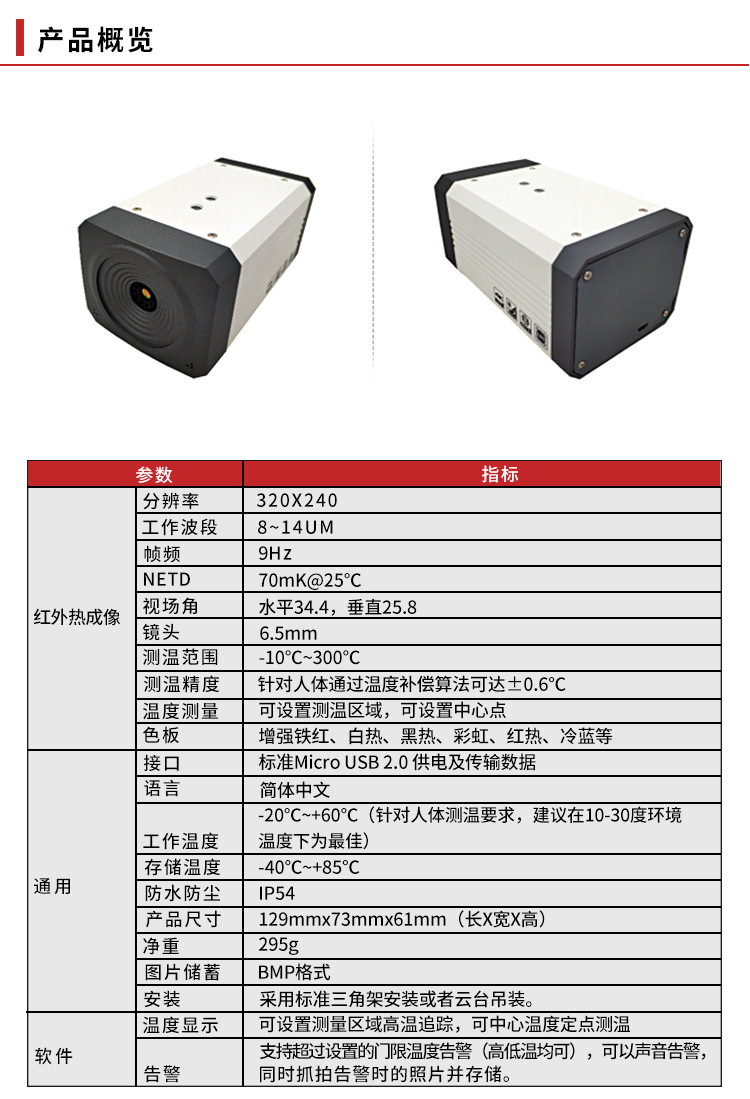 測溫儀采用USB一線安裝的方式,將供電和數(shù)據(jù)傳輸,通過一條USB線路完成,可便利的達(dá)到快速部署??捎煽蛻粼诓渴瓞F(xiàn)場,根據(jù)環(huán)境的變化自行進(jìn)行溫度補(bǔ)償,無需黑體進(jìn)行不斷校準(zhǔn),而能保證誤差精度在±0.5℃范圍內(nèi)。