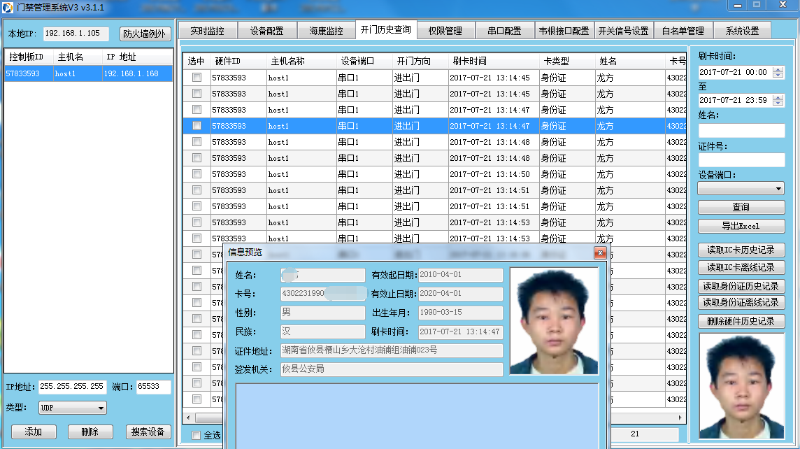 可以按端口號(hào),姓名,證件號(hào),時(shí)間,查詢數(shù)據(jù)。