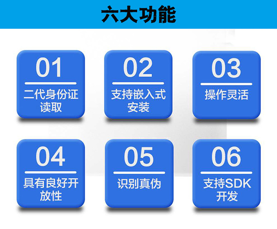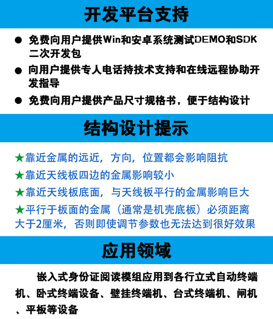 嵌入式多功能身份證閱讀器模組,包含身份證SAM核心模塊、主控板、天線板、數(shù)據(jù)通信線等配件,外觀體積小、結(jié)構(gòu)緊湊、安裝方便、性能可靠、接口豐富(UBS、RS232、TTL);便于結(jié)構(gòu)設(shè)計等特點;可內(nèi)置于各行立式自動終端、柜式終端、臥式終端、壁掛終端、臺式終端、閘機、平板等設(shè)備中,廣泛應(yīng)用于政府、民政、金融、通信、教育、交通、企業(yè)、小區(qū)、酒店等各行業(yè)