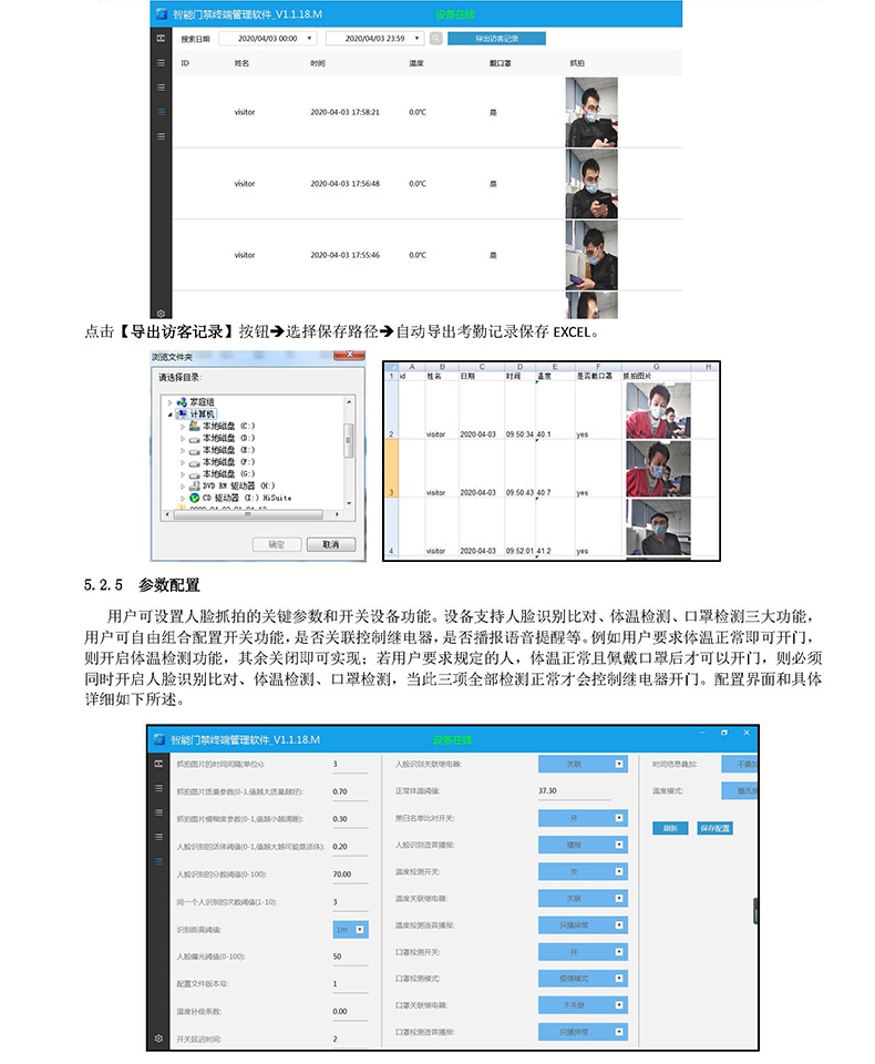 點(diǎn)擊【導(dǎo)出訪客記錄】按鈕è選擇保存路徑è自動(dòng)導(dǎo)出考勤記錄保存EXCEL