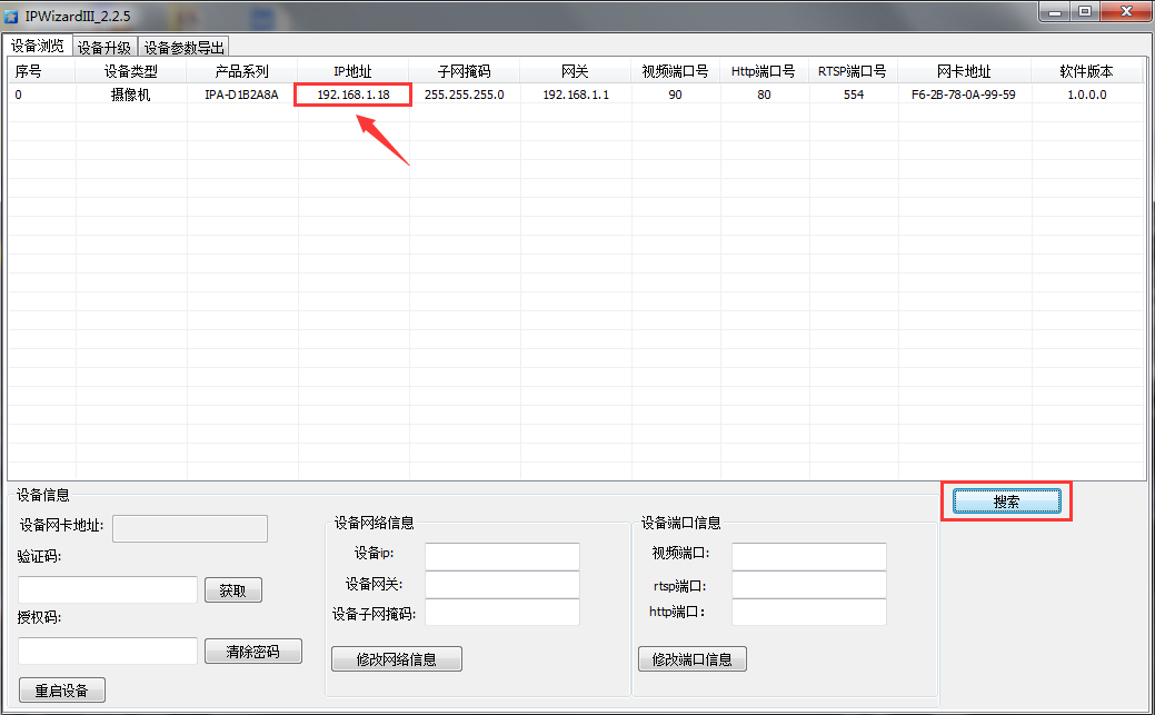 通過網(wǎng)線將設(shè)備正確連接到PC電腦;設(shè)備上電后,在電腦打開搜索工具,搜索設(shè)備IP地址。同時(shí)也可通過工具修改設(shè)備IP地址。