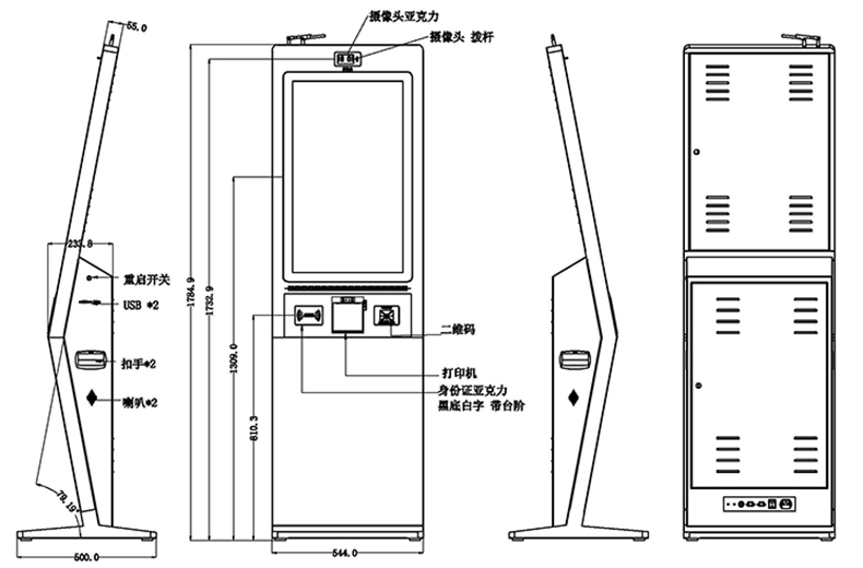 32寸多功能自助終端一體機整機符合人體工程設(shè)計,外殼采用鈑金烤漆工藝,外形美觀;設(shè)備內(nèi)部模塊化設(shè)計,主要集成高靈敏電容觸摸屏、高分辨率液晶屏、工控主板、身份證閱讀器、IC卡讀寫器、高清攝像頭、一二維條碼掃描、熱敏打印等模組,產(chǎn)品具有結(jié)構(gòu)合理,操作簡便,觸摸靈敏,性能穩(wěn)定,方便維護等優(yōu)點;同時設(shè)備可安裝安卓系統(tǒng) 和WIN系統(tǒng)供客戶選擇,以及根據(jù)客戶需求進行功能模塊定制。