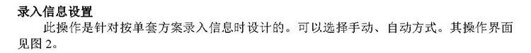 此操作是針對(duì)按單套方案錄入信息時(shí)設(shè)計(jì)的??梢赃x擇手動(dòng)、自動(dòng)方式。其操作界面見(jiàn)圖2。