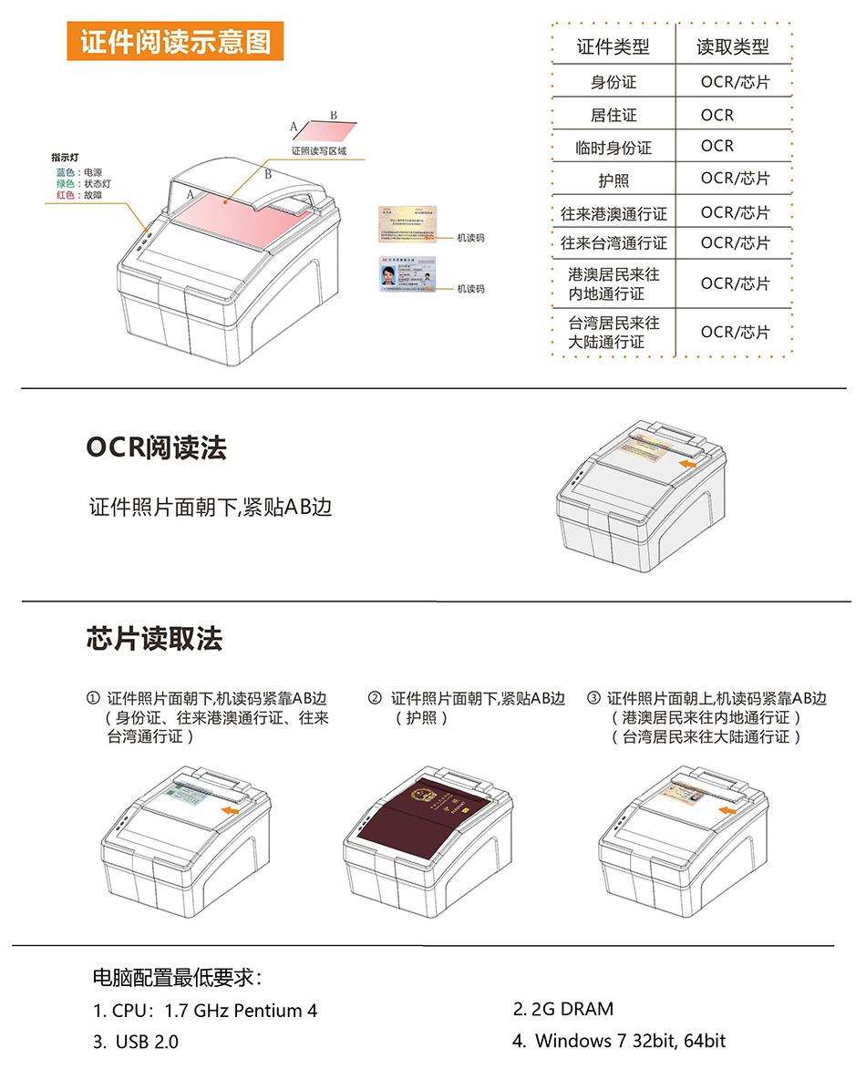 以下配置是保證上述速度的最低配置(如增加證件防偽鑒別軟件則需要更高配置):