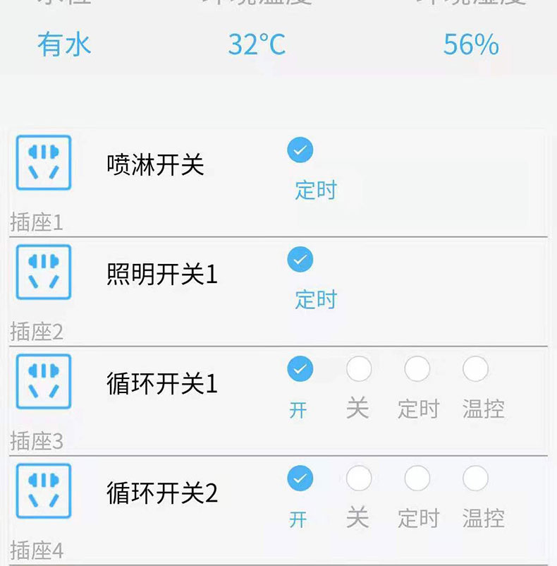 可控制水泵、照明燈、排氣扇、加熱器、霧化器、噴淋泵、殺菌燈、喂食器、馬達、工業(yè)設(shè)備等。