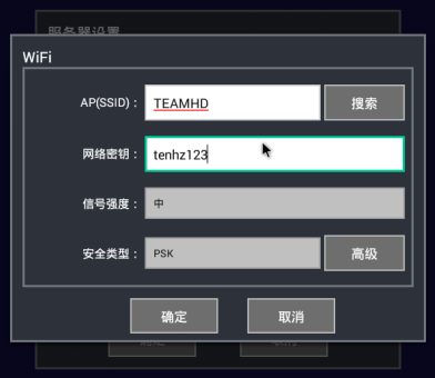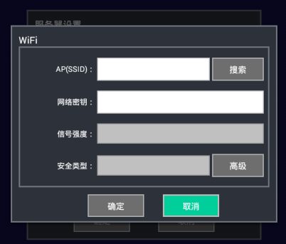 WiFi配置如下面圖片所示,可通過(guò)WiFi配置界面的搜索按鈕打開(kāi)手動(dòng)搜索界面,通過(guò)刷新按鈕更新無(wú)線AP列表,并在搜索結(jié)果列表中選擇合適的AP名稱(chēng)(AP名稱(chēng)也可以自行手動(dòng)直接輸入),同時(shí)輸入相應(yīng)的網(wǎng)絡(luò)密鑰即可完成WiFi的設(shè)置。如果某些AP不支持DHCP動(dòng)態(tài)分配IP地址或者網(wǎng)絡(luò)環(huán)境不允許使用動(dòng)態(tài)IP地址,則可通過(guò)高級(jí)按鈕進(jìn)入手動(dòng)設(shè)置IP地址界面(設(shè)置界面完全類(lèi)似以太網(wǎng)的手動(dòng)設(shè)置IP地址界面)。