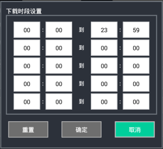 下載時(shí)段設(shè)置界面如下圖所示,最多可設(shè)置五個(gè)終端機(jī)的下載時(shí)段,00:00~00:00表示空配置項(xiàng),00:00~23:59表示全天均可下載。終端機(jī)只有在配置的下載時(shí)段內(nèi)才會(huì)從服務(wù)器下載同步節(jié)目?jī)?nèi)容;而配置、程序和系統(tǒng)包的下載不受下載時(shí)間限制。