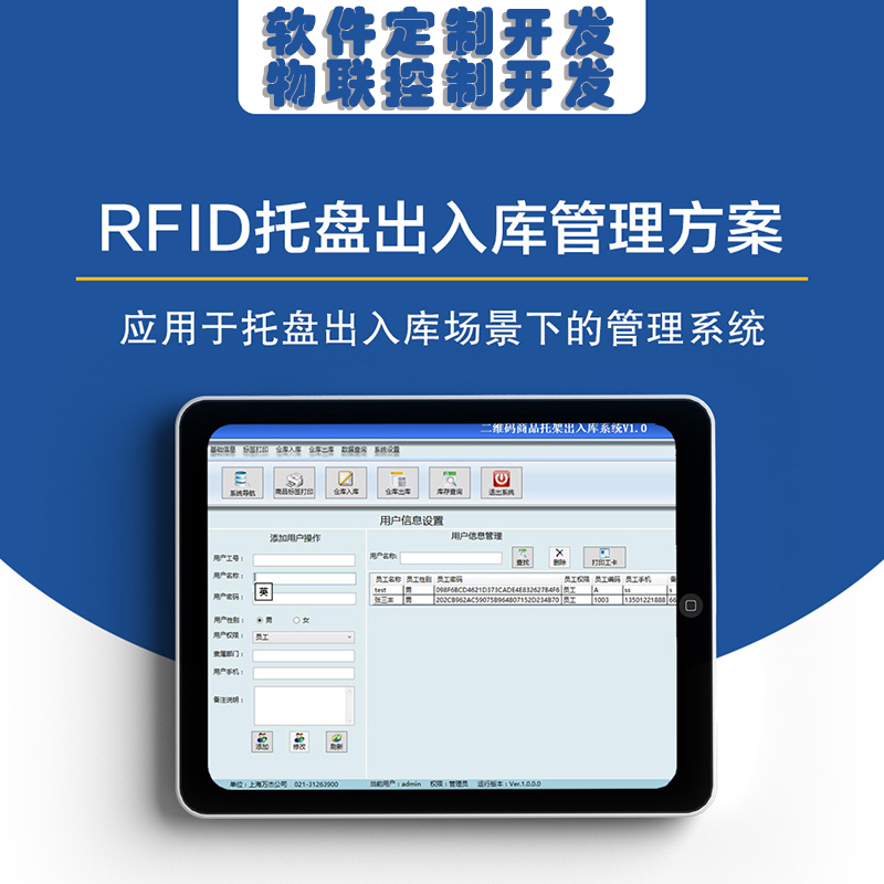 2)叉車師傅操作:改造叉車帶RFID讀寫器,叉起托盤的同時(shí)通過叉車作業(yè)平板操作,將托盤貨物相關(guān)信息寫入托盤標(biāo)簽,并進(jìn)行入庫操作。 監(jiān)督人員操作:通過移動式的手持機(jī)將托盤貨物信息寫入托盤標(biāo)簽,并進(jìn)行入庫操作。