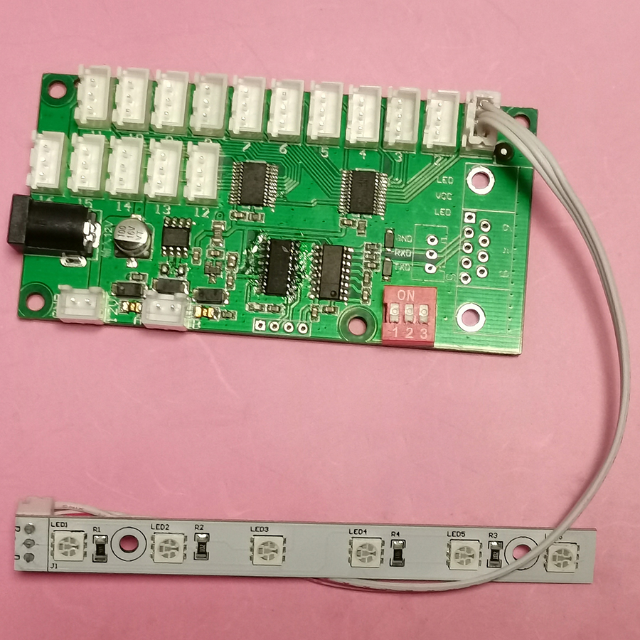 LED指標燈控制板12V直流供電,采用RS485通訊,集成撥碼開關,板子單獨使用,也可經過調節(jié)撥碼開關多片板并聯使用,輸出32路接口,可接5V-12V之間的LED指示燈,控制板可應用到貨架上指示貨架倉位,用到終端機上面做為功能指示,用到生產流水線提示工作崗位等。