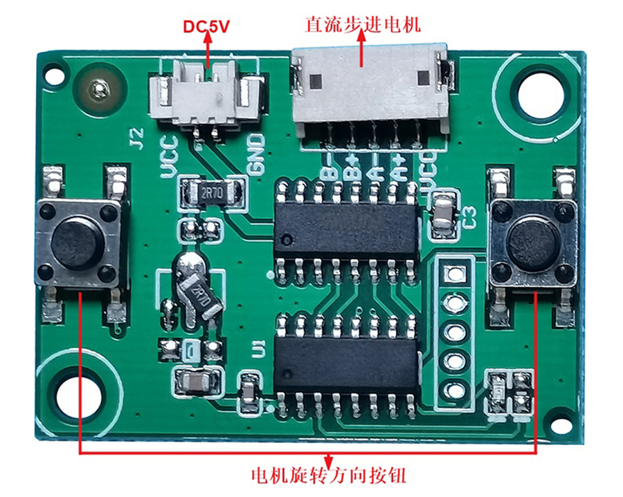 微型直流步進電機驅(qū)動控制板采用直流5V供電,手動調(diào)試電機旋轉(zhuǎn)方向!我公司開發(fā)此電機驅(qū)動控制主要用在終端機設(shè)備中,用于下上調(diào)節(jié)攝像頭拍攝高度;同時用于其它可以旋轉(zhuǎn)的電子設(shè)備當中。