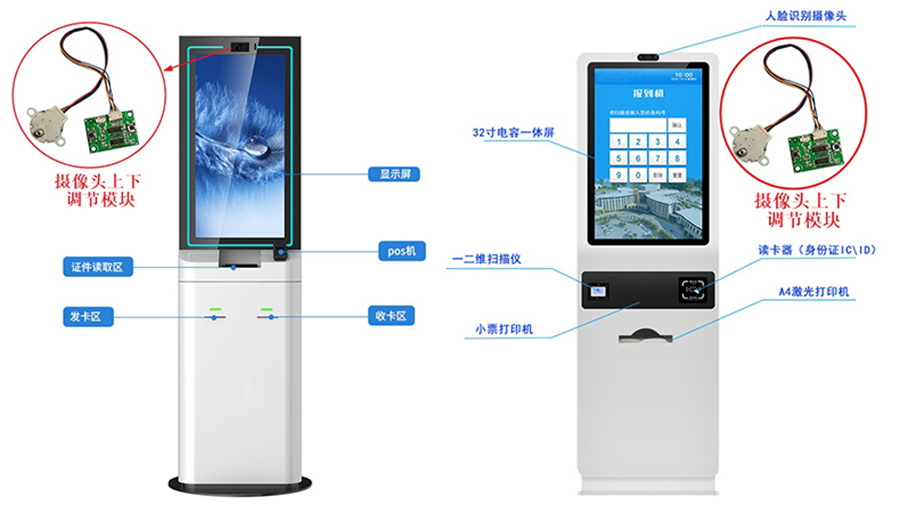 自助終端機定制:定制各種場景各種款式非標終端機;例如訪客機、景區(qū)自助取票機、醫(yī)院繳費查詢機、醫(yī)院自助取單機、社保查詢機、室內(nèi)外廣告機、排隊叫號機、工控一體機、電力繳費查詢機、圖書自助銷售機、便攜式計算機、酒店自助入住機、自助收銀機等終端。