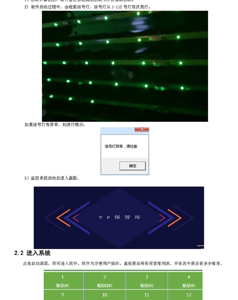 4、軟件控制信號(hào)燈進(jìn)行位置定位,存取方便。對(duì)信號(hào)燈的控制,做到一庫一燈,使用時(shí)閃爍,不使用時(shí)關(guān)閉的智能控制。