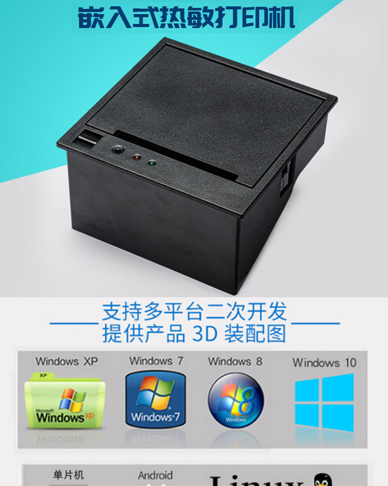自助終端設(shè)備收銀電子稱帶切刀80mm嵌入式面板熱敏打印機(jī)PCBA控制板方案定制開發(fā)