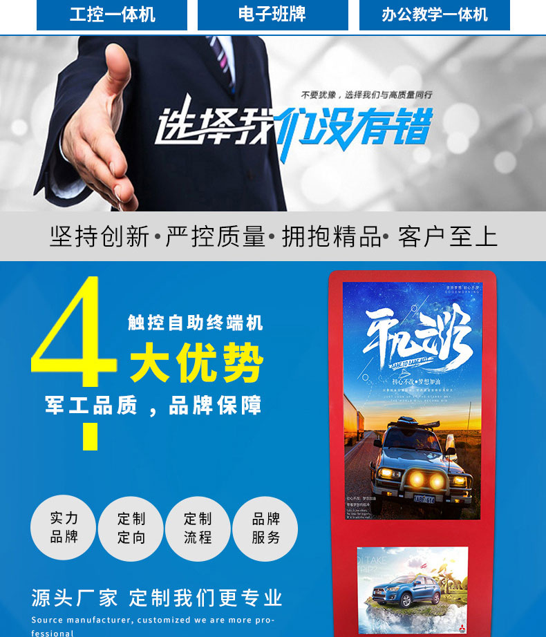 一站式解決方案供應(yīng)商,來(lái)圖來(lái)樣加工快速出樣品,提供相關(guān)硬件SDK協(xié)助開(kāi)發(fā);專(zhuān)注觸控產(chǎn)品的設(shè)計(jì)生產(chǎn),擁有十年設(shè)計(jì)經(jīng)驗(yàn)工程師、技術(shù)工程、生產(chǎn)管理人員,以高效品質(zhì)服務(wù)客戶(hù);從供應(yīng)商的管理,配件的選型,工藝流程的管理各個(gè)環(huán)節(jié)都嚴(yán)格把關(guān),通過(guò)建立自己的產(chǎn)品質(zhì)量標(biāo)準(zhǔn)并嚴(yán)格執(zhí)行,確保產(chǎn)品質(zhì)量可靠;體驗(yàn)流暢。