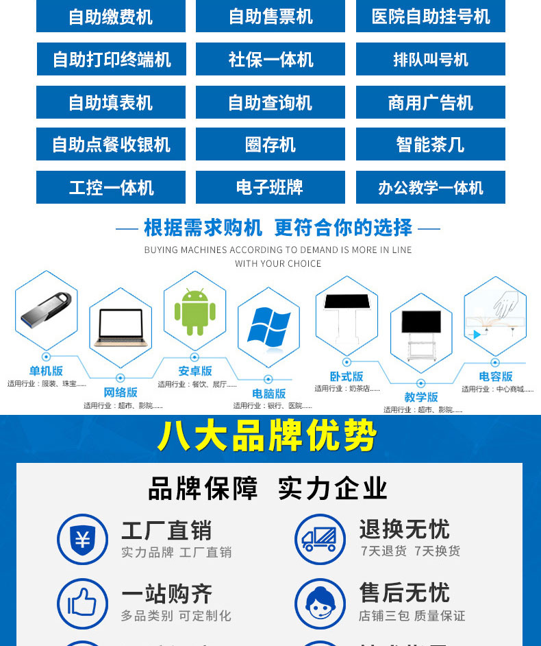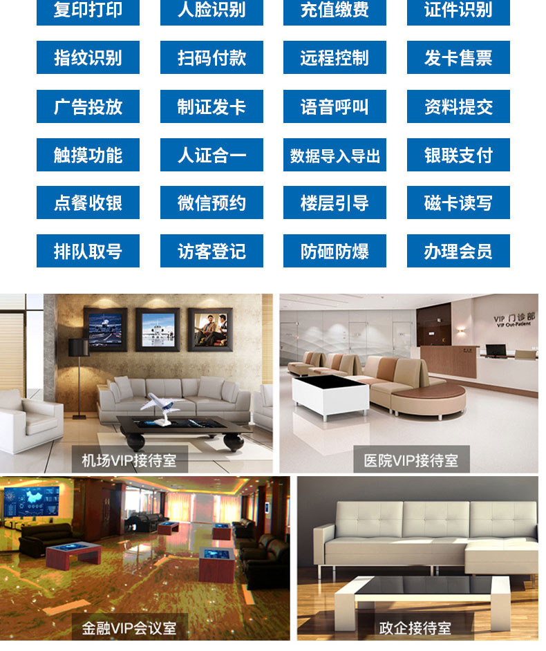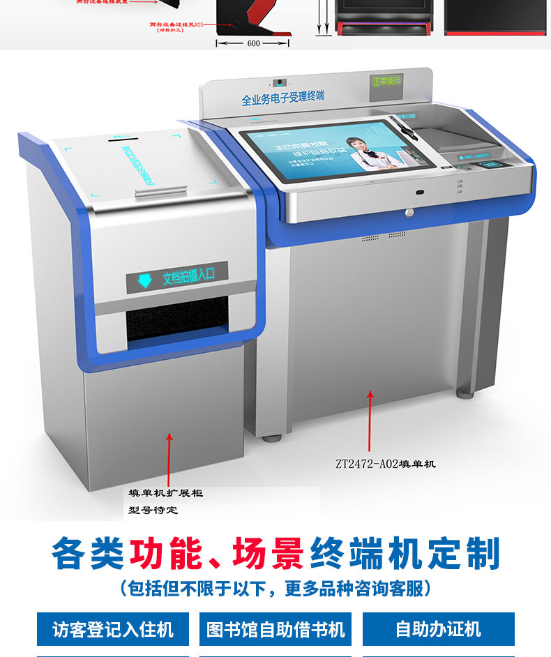 自助終端機(jī)定制:定制各種場景各種款式非標(biāo)終端機(jī);例如訪客機(jī)、景區(qū)自助取票機(jī)、醫(yī)院繳費(fèi)查詢機(jī)、醫(yī)院自助取單機(jī)、社保查詢機(jī)、室內(nèi)外廣告機(jī)、排隊(duì)叫號機(jī)、工控一體機(jī)、電力繳費(fèi)查詢機(jī)、圖書自助銷售機(jī)、便攜式計(jì)算機(jī)、酒店自助入住機(jī)、自助收銀機(jī)等終端。