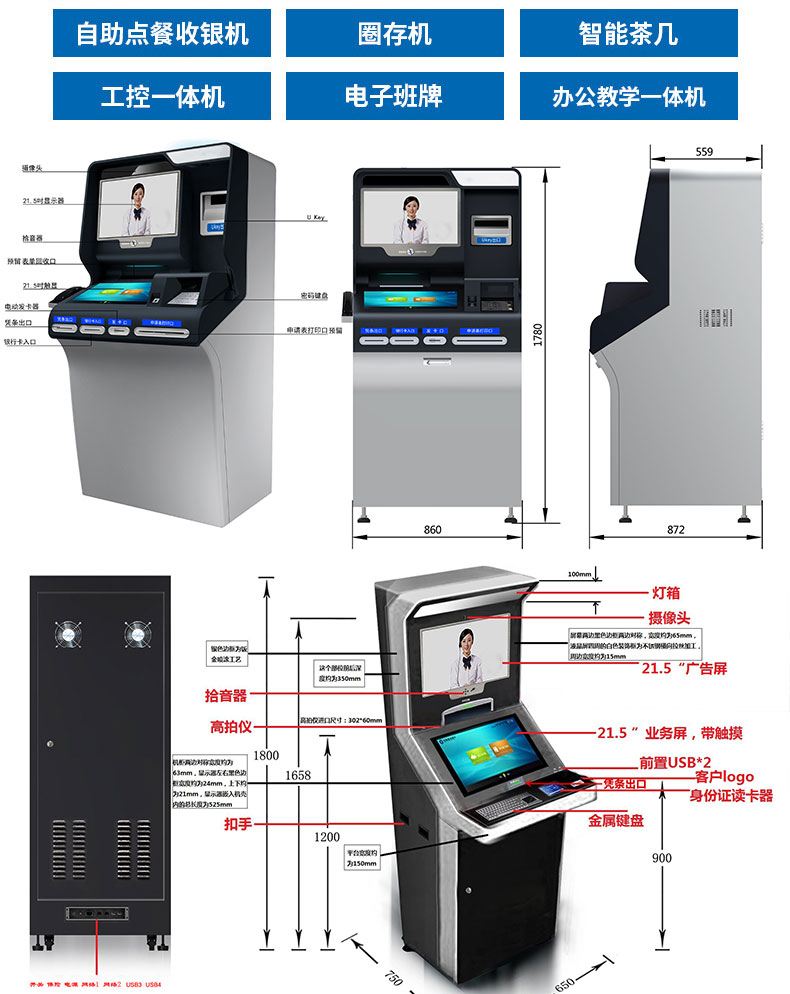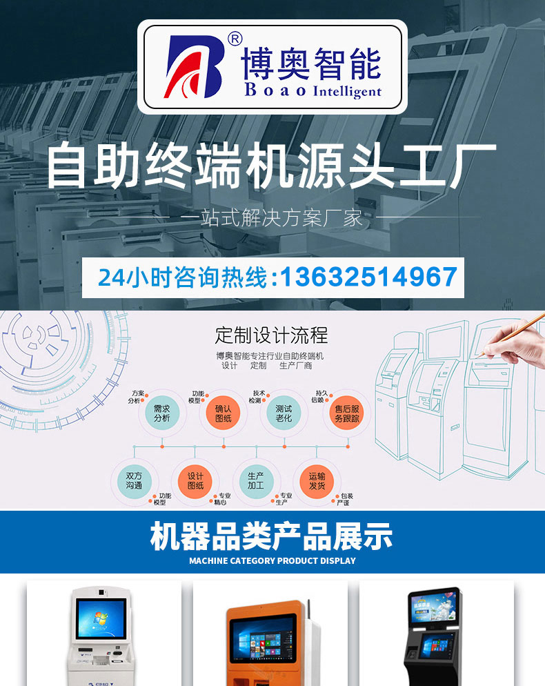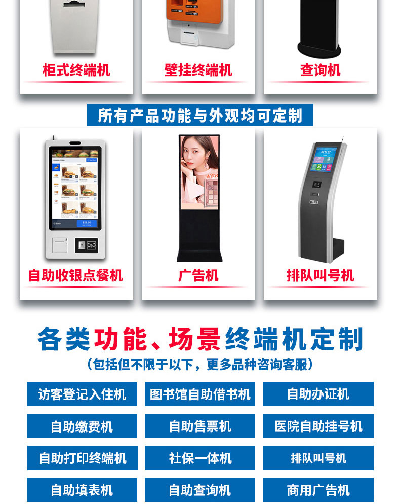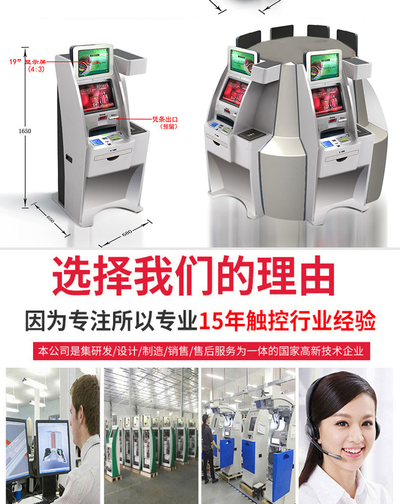 專(zhuān)業(yè)提供電腦觸控產(chǎn)品、自助服務(wù)終端的設(shè)計(jì)及生產(chǎn)服務(wù),主要產(chǎn)品自助終端機(jī)、自助打印機(jī)、自助取票機(jī)、自助查詢(xún)機(jī)、自助繳費(fèi)機(jī)、自助發(fā)卡機(jī)、自助政務(wù)一體機(jī),產(chǎn)品使用于各個(gè)行業(yè);醫(yī)院、學(xué)校、銀行、酒店、景區(qū)等。。。。。公司擁有專(zhuān)業(yè)的生產(chǎn)線(xiàn),嚴(yán)格的質(zhì)量把控。耐心的咨詢(xún)服務(wù)團(tuán)隊(duì)及專(zhuān)業(yè)的技術(shù)負(fù)責(zé)團(tuán)體。
