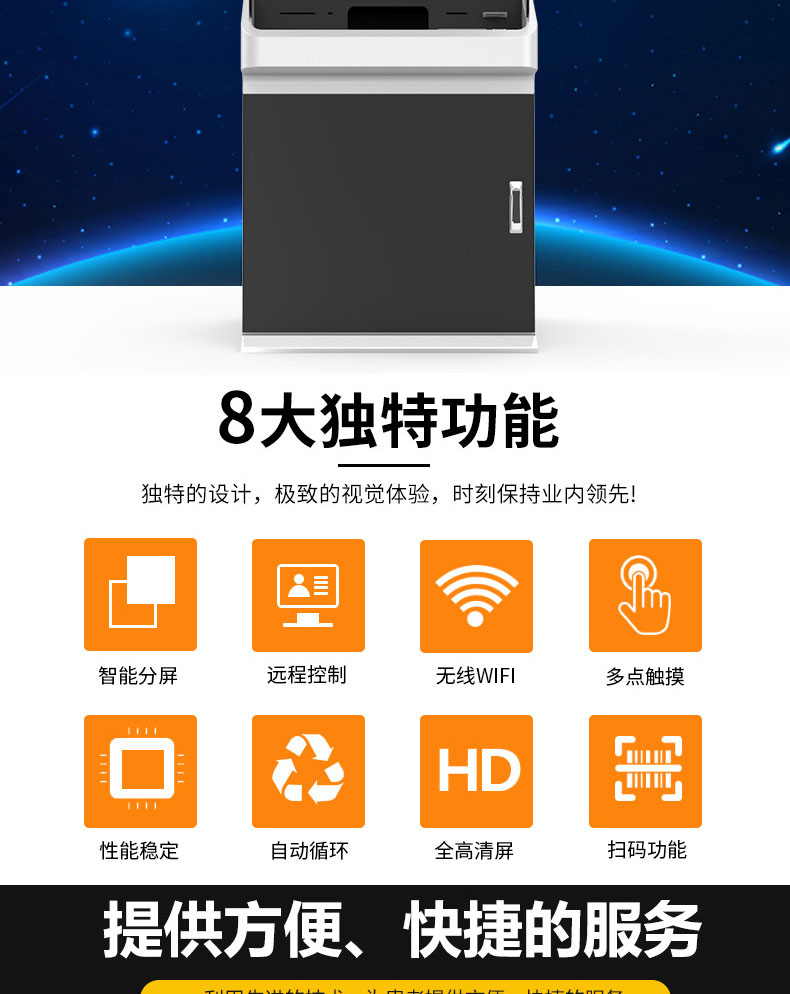公司成產(chǎn)以“誠(chéng)信、團(tuán)結(jié)、務(wù)實(shí)、創(chuàng)新”的企業(yè)精神開(kāi)拓市場(chǎng)、優(yōu)化產(chǎn)品細(xì)節(jié)提供舒適的自助體驗(yàn)。公司本著“誠(chéng)信為本,質(zhì)量至上”的取勝之道不斷開(kāi)發(fā)自助終端在各行業(yè)的應(yīng)用,打造方便快捷的一站式服務(wù)。