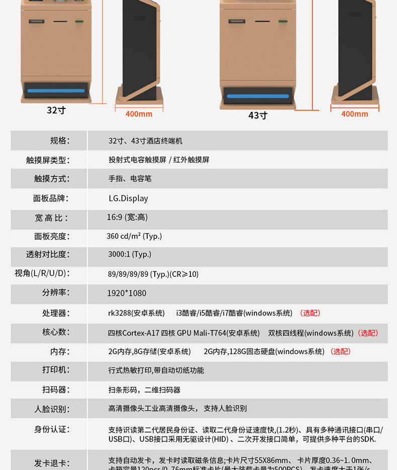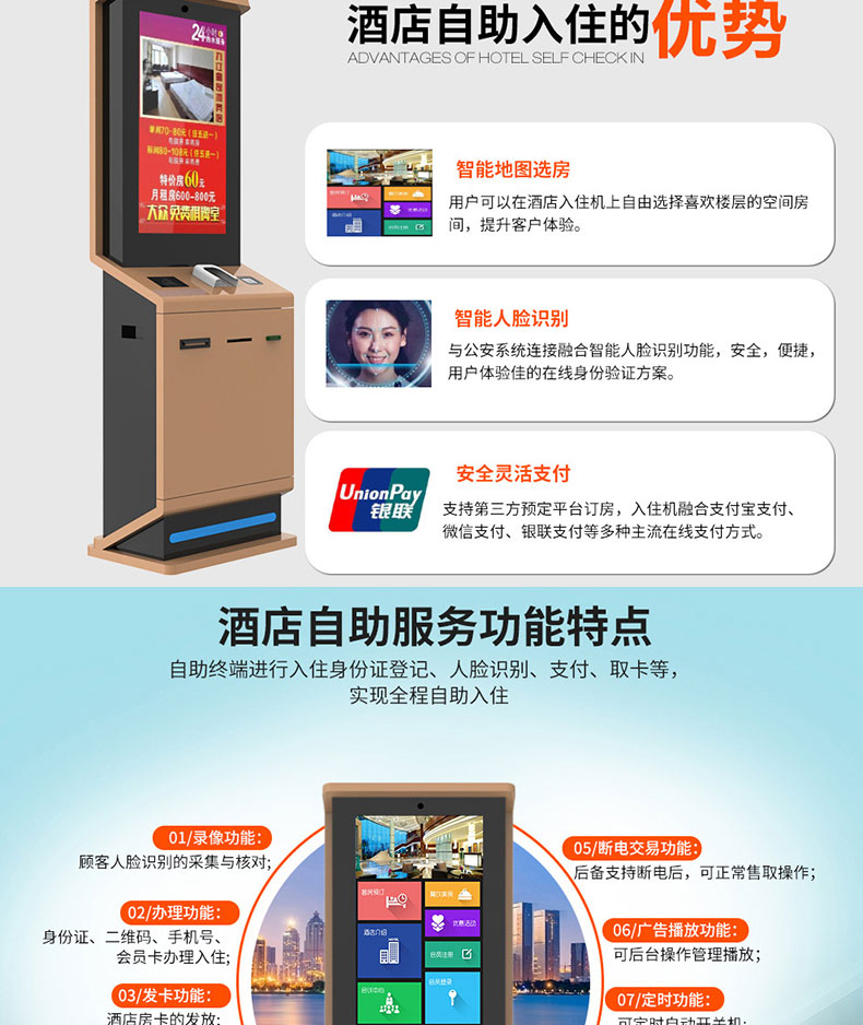 定制多功能觸摸一體機(jī)證件登記人臉識(shí)別酒店自助入住智能終端系統(tǒng)軟件開(kāi)發(fā)