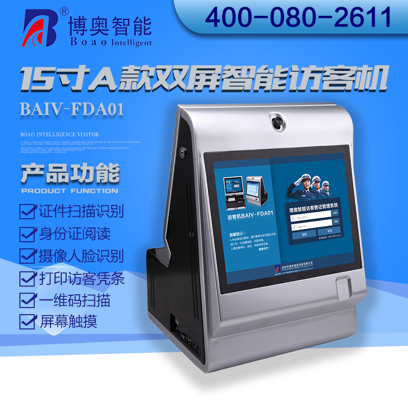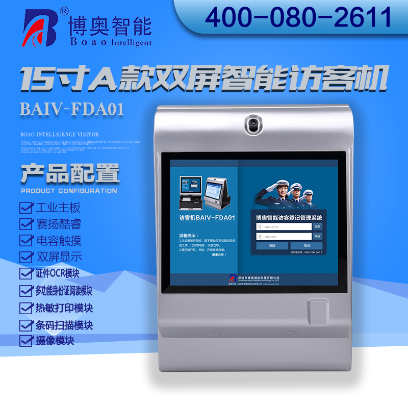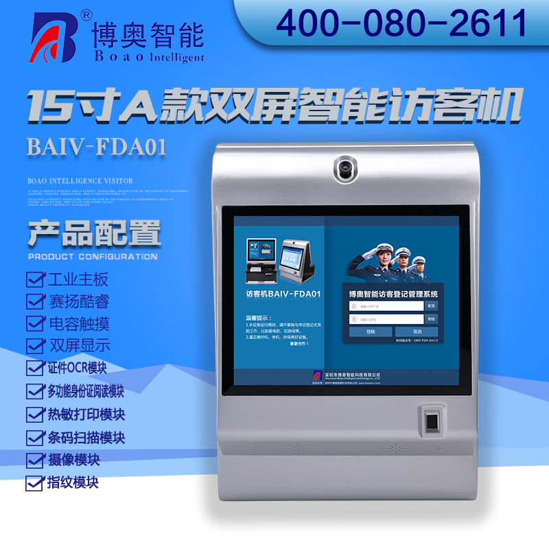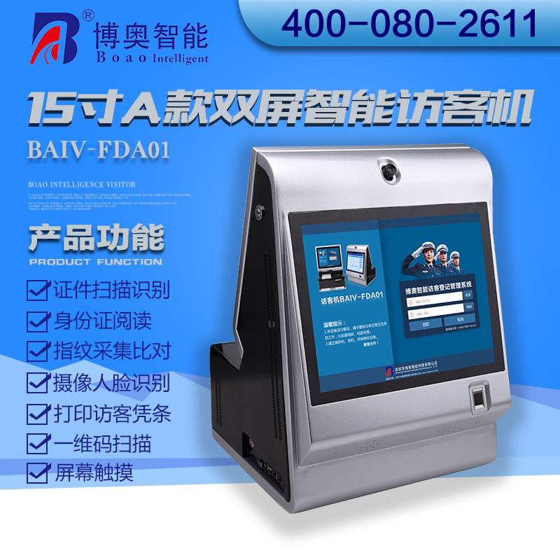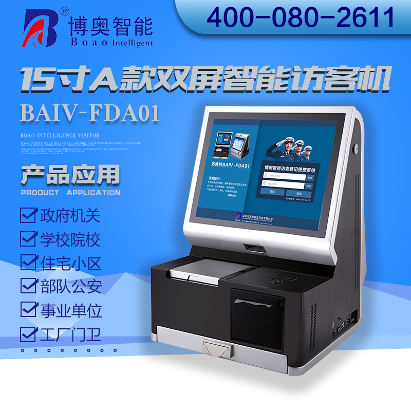 ? ? ? ?15寸A款雙屏智能訪客機(jī)主要用在政府機(jī)關(guān)、關(guān)口、機(jī)場(chǎng)、軍隊(duì)、公安、法院、學(xué)校、事業(yè)單位、花園小區(qū)、高檔寫(xiě)字樓、工廠等門(mén)衛(wèi)傳達(dá)室用來(lái)訪客登記管理。