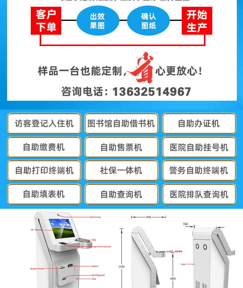 落地式查詢排隊(duì)叫號一體機(jī)讀卡小票打印智能終端應(yīng)用系統(tǒng)軟件開發(fā)