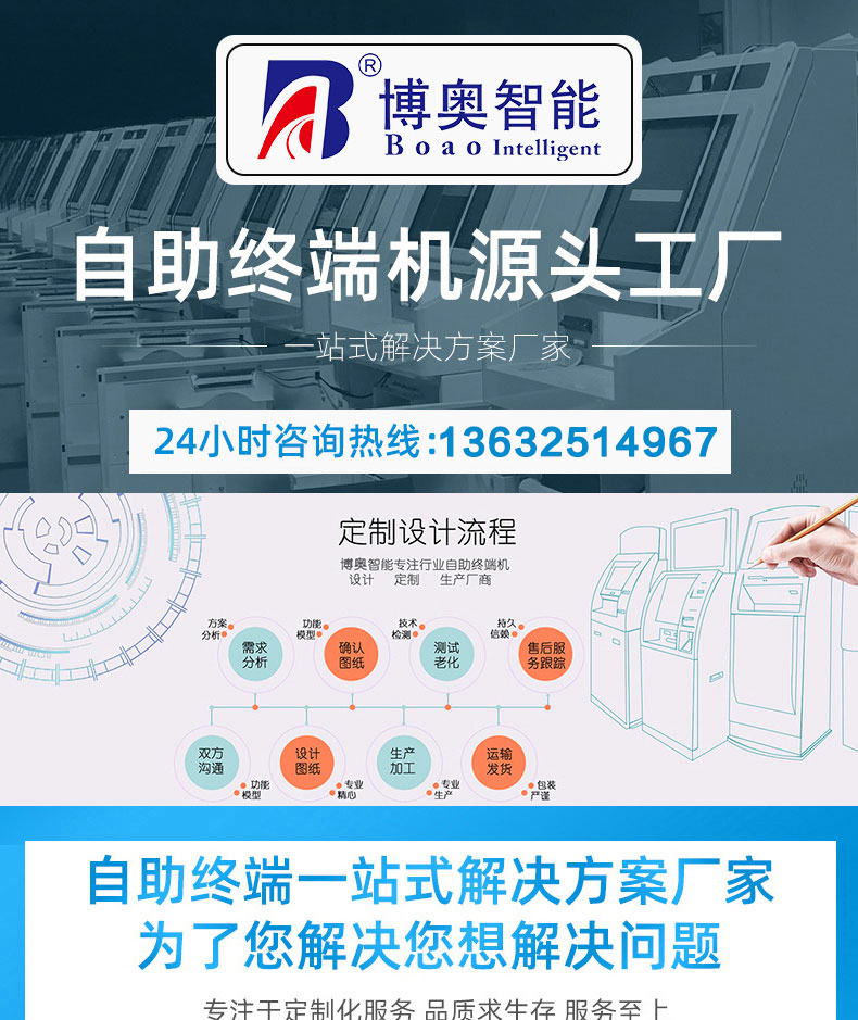 深圳市博奧智能科技有限公司專業(yè)提供自助終端機(jī)、觸摸查詢一體機(jī)、廣告機(jī)、液晶顯示器等產(chǎn)品的硬件、軟件研發(fā)與設(shè)計(jì)加工OEM/ODM等一站式服務(wù);我們一直秉承以產(chǎn)品質(zhì)量為核心、客戶至上、服務(wù)共贏為宗旨,為金融、醫(yī)療、教育、人工智能、政府工程項(xiàng)目、智慧城市、軌道交通、商業(yè)自助服務(wù)、廣告?zhèn)髅降刃袠I(yè)提供質(zhì)量過硬的產(chǎn)品和優(yōu)質(zhì)的服務(wù)。