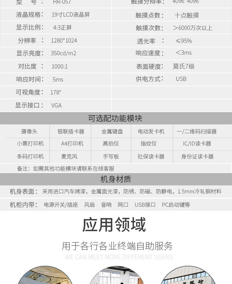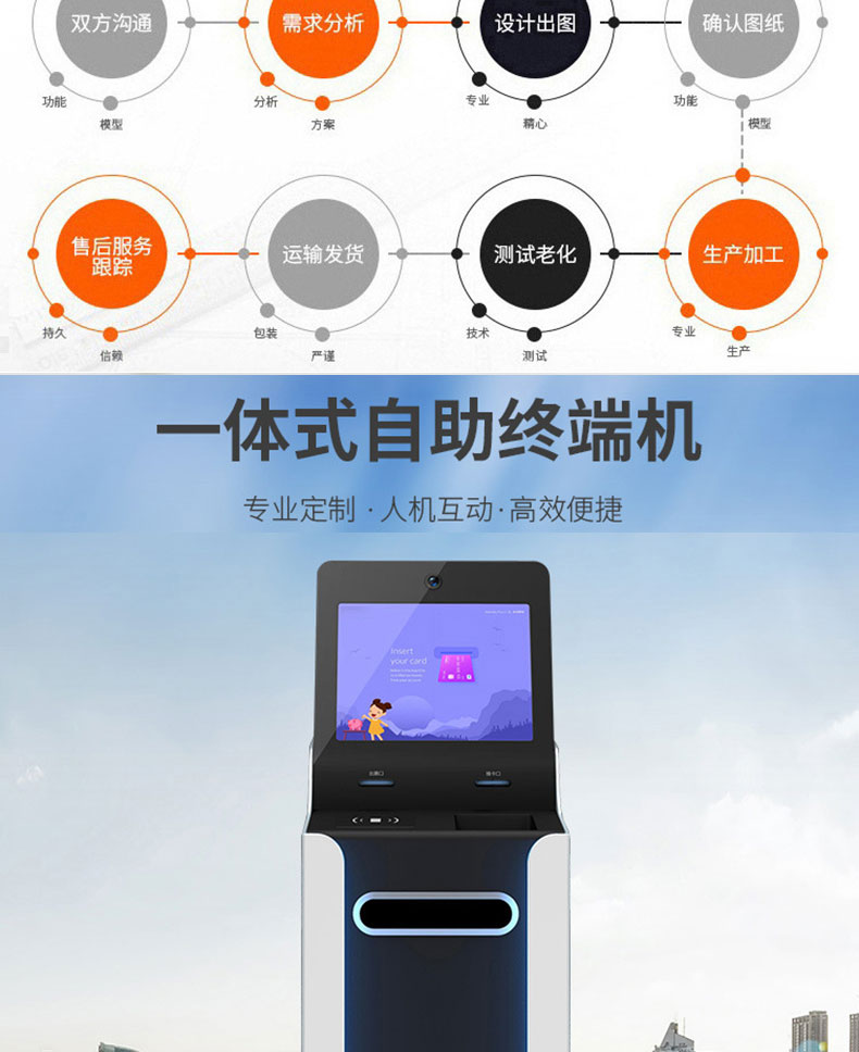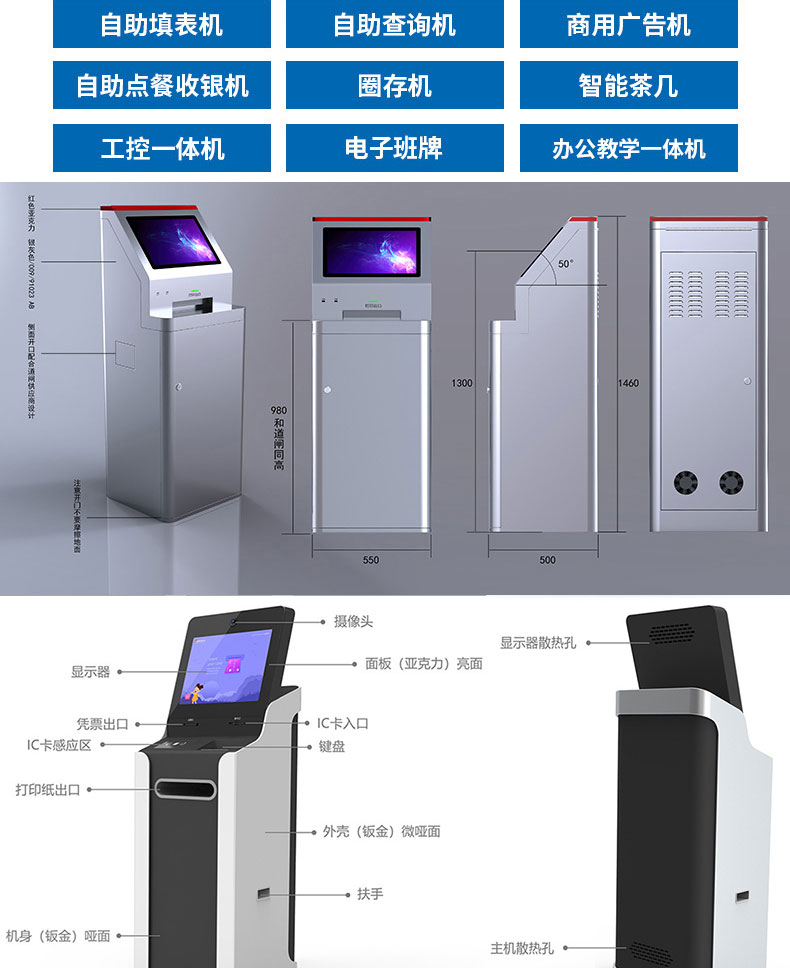 專業(yè)提供電腦觸控產(chǎn)品、自助服務(wù)終端的設(shè)計及生產(chǎn)服務(wù),主要產(chǎn)品自助終端機、自助打印機、自助取票機、自助查詢機、自助繳費機、自助發(fā)卡機、自助政務(wù)一體機,產(chǎn)品使用于各個行業(yè);醫(yī)院、學校、銀行、酒店、景區(qū)等。。。。。公司擁有專業(yè)的生產(chǎn)線,嚴格的質(zhì)量把控。耐心的咨詢服務(wù)團隊及專業(yè)的技術(shù)負責團體。
