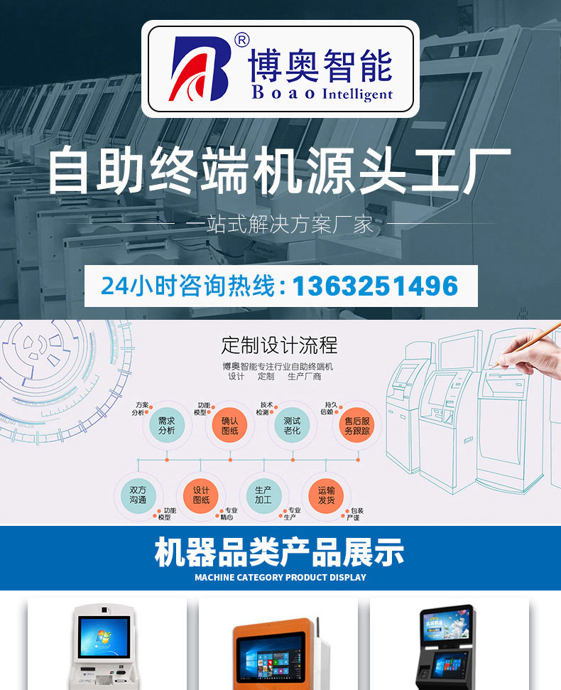 深圳市博奧智能科技有限公司專業(yè)提供自助終端機、觸摸查詢一體機、廣告機、液晶顯示器等產(chǎn)品的硬件、軟件研發(fā)與設(shè)計加工OEM/ODM等一站式服務(wù);我們一直秉承以產(chǎn)品質(zhì)量為核心、客戶至上、服務(wù)共贏為宗旨,為金融、醫(yī)療、教育、人工智能、政府工程項目、智慧城市、軌道交通、商業(yè)自助服務(wù)、廣告?zhèn)髅降刃袠I(yè)提供質(zhì)量過硬的產(chǎn)品和優(yōu)質(zhì)的服務(wù)。