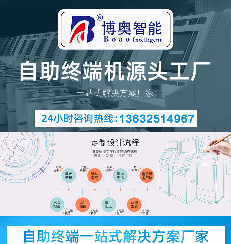 深圳市博奧智能科技有限公司專業(yè)提供自助終端機、觸摸查詢一體機、廣告機、液晶顯示器等產(chǎn)品的硬件、軟件研發(fā)與設(shè)計加工OEM/ODM等一站式服務(wù);我們一直秉承以產(chǎn)品質(zhì)量為核心、客戶至上、服務(wù)共贏為宗旨,為金融、醫(yī)療、教育、人工智能、政府工程項目、智慧城市、軌道交通、商業(yè)自助服務(wù)、廣告?zhèn)髅降刃袠I(yè)提供質(zhì)量過硬的產(chǎn)品和優(yōu)質(zhì)的服務(wù)。