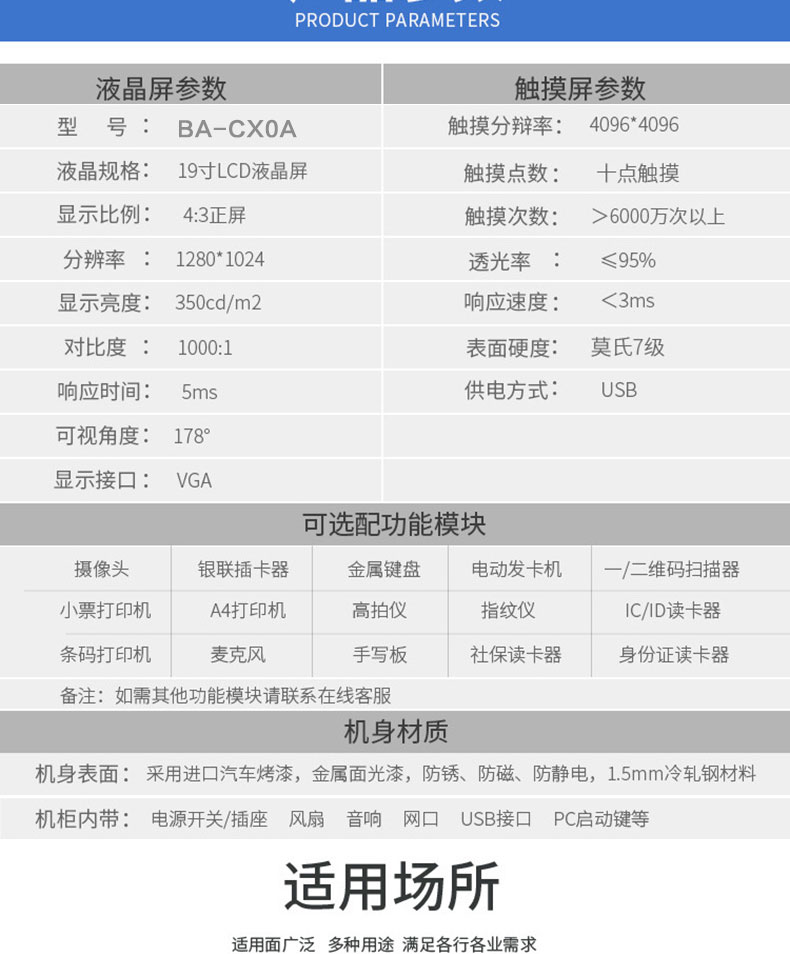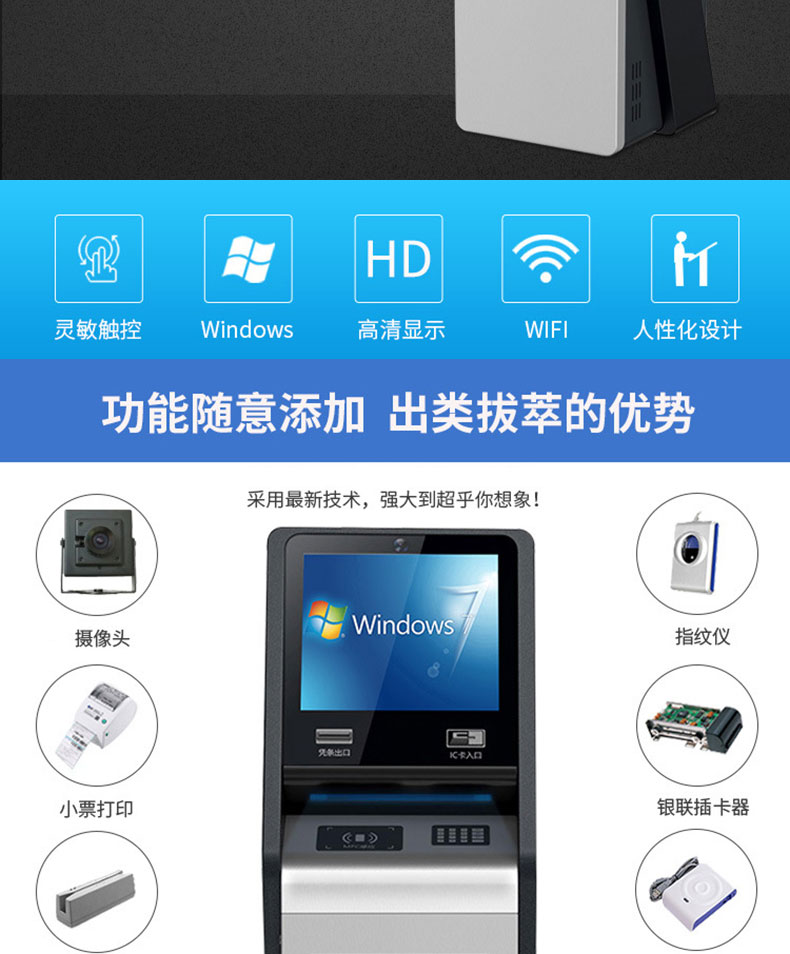 自助終端機(jī)定制:定制各種場景各種款式非標(biāo)終端機(jī);例如訪客機(jī)、景區(qū)自助取票機(jī)、醫(yī)院繳費查詢機(jī)、醫(yī)院自助取單機(jī)、社保查詢機(jī)、室內(nèi)外廣告機(jī)、排隊叫號機(jī)、工控一體機(jī)、電力繳費查詢機(jī)、圖書自助銷售機(jī)、便攜式計算機(jī)、酒店自助入住機(jī)、自助收銀機(jī)等終端。