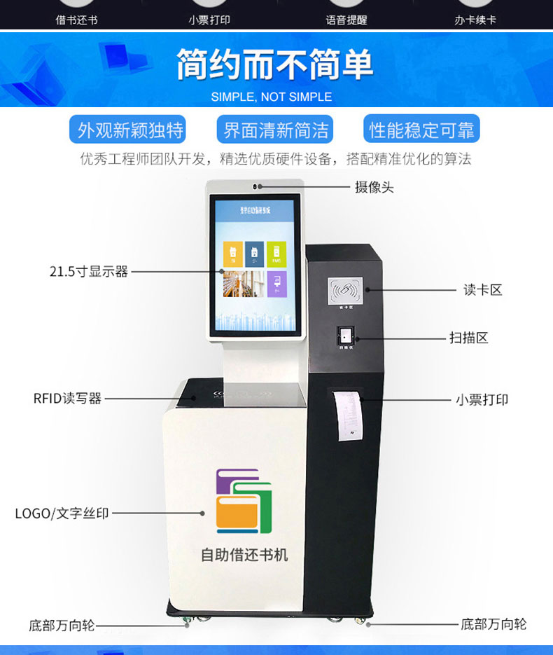 立式觸摸一體機(jī)自動(dòng)圖書借還閱覽借閱辦證打印人證比對(duì)智能終端系統(tǒng)軟件開發(fā)