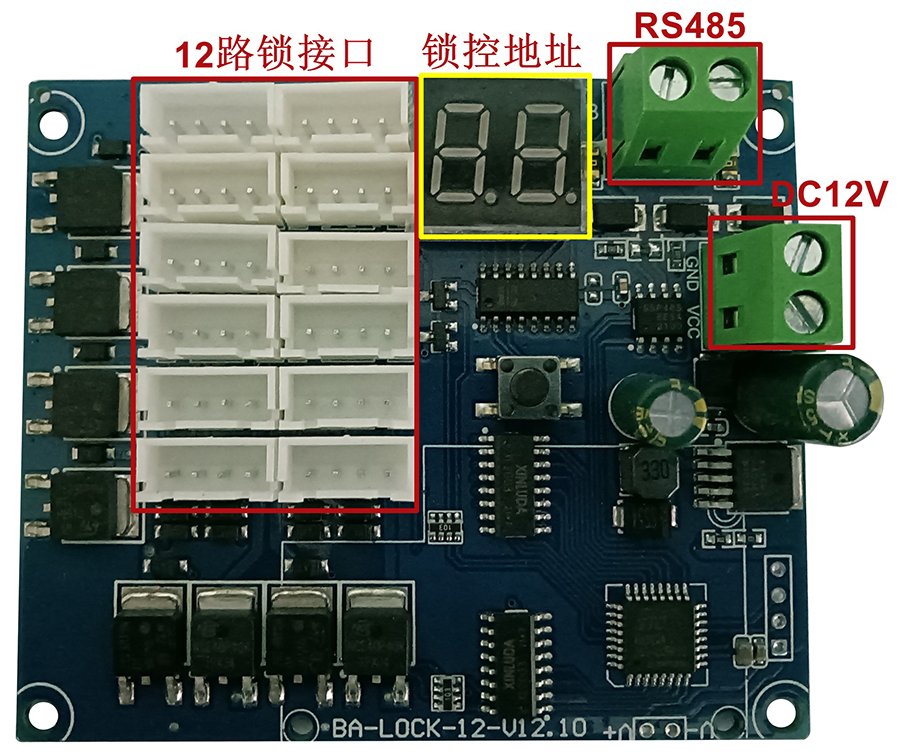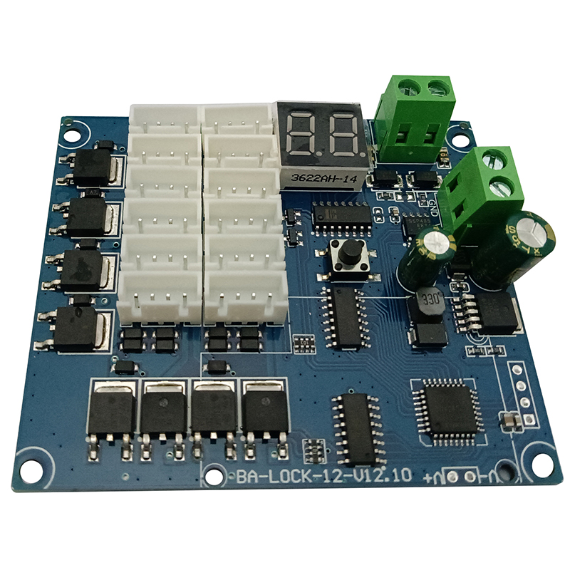 12路鎖控板是我公司專為電子柜開發(fā)的一款控制板,采用DC12V供電;管理系統(tǒng)軟件可以通過485通信控制12路電磁鎖,隨時反饋鎖狀態(tài)信號,支持一鍵全開功能和顯示鎖控地址。
