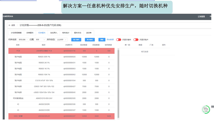 3.生成點(diǎn)料計(jì)劃,拿著物料檢索型號(hào),自動(dòng)點(diǎn)料、配料、標(biāo)識(shí)插件貼片。