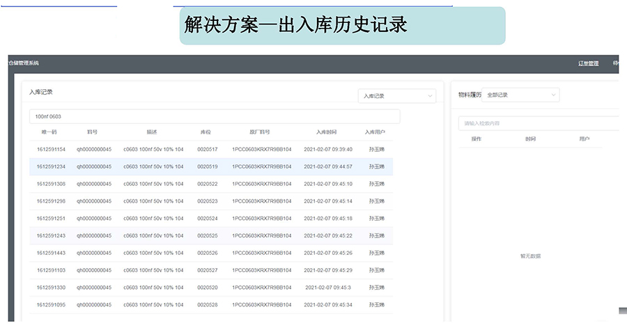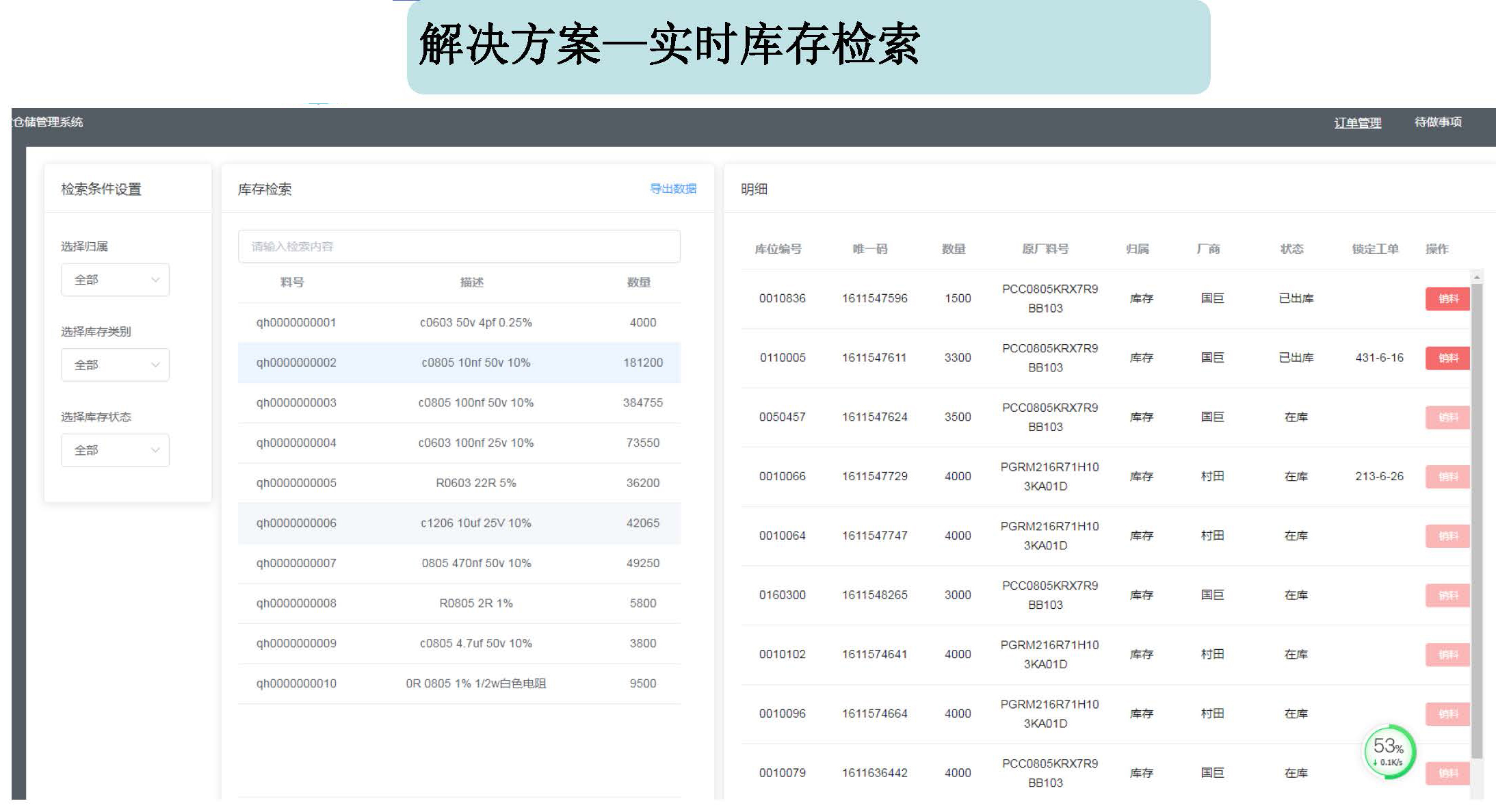 根據(jù)多年工廠管理經(jīng)驗(yàn),開(kāi)發(fā)出智能倉(cāng)儲(chǔ)亮燈貨架及倉(cāng)儲(chǔ)管理系統(tǒng)軟件??梢蕴峁┤珗?chǎng)景多種狀態(tài)物料的智能管控,包括客供料,自購(gòu)料,客自供料一體的來(lái)料管理,臨時(shí)增加訂單,臨時(shí)取消訂單和臨時(shí)修改訂單數(shù)量的生產(chǎn)計(jì)劃安排??梢詫?duì)接ERP.MES系統(tǒng),并完善系統(tǒng)中存在的不足。