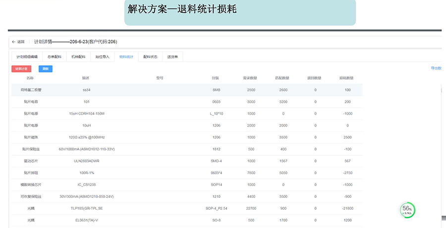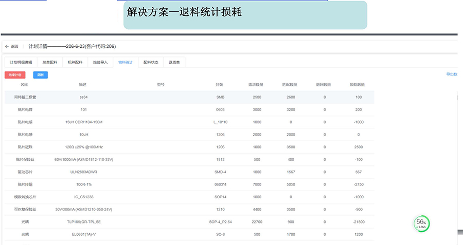 6.退料盤(pán)點(diǎn),自動(dòng)計(jì)算損耗。