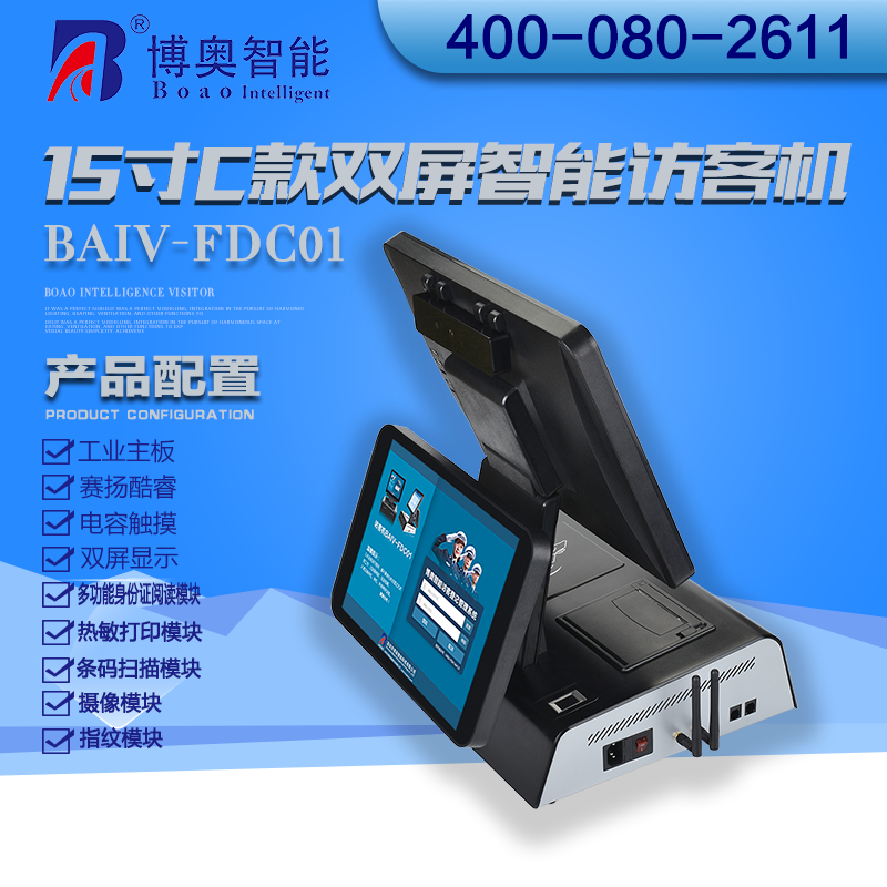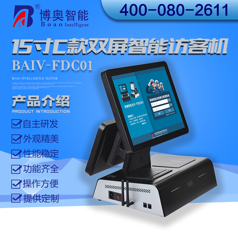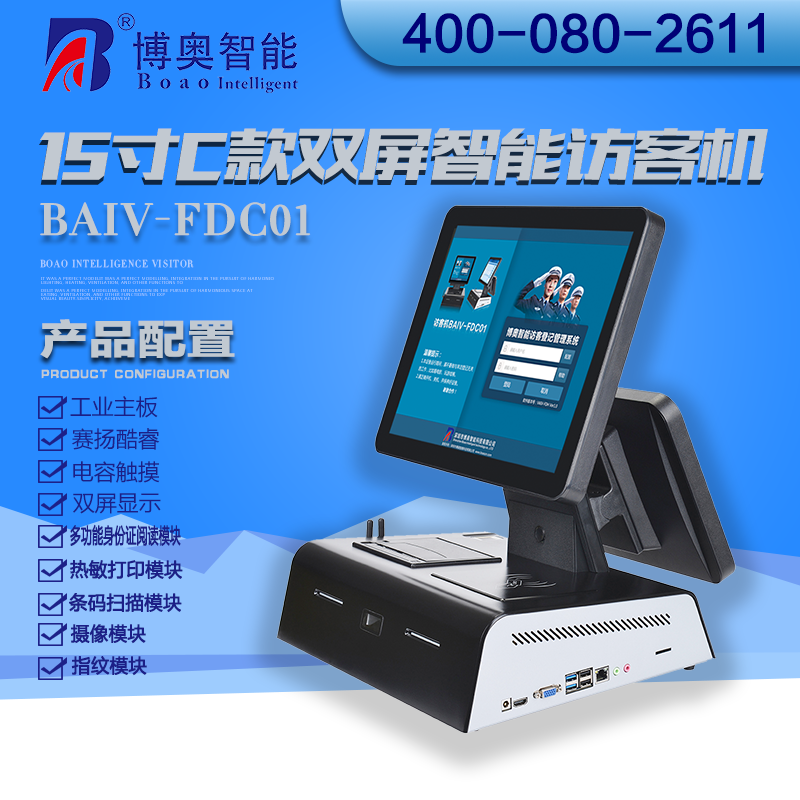 ? ? ??15寸C款雙屏智能訪客機(jī)控制核芯是博奧智能自主研發(fā)的工控主板,達(dá)到工業(yè)級(jí)要求。