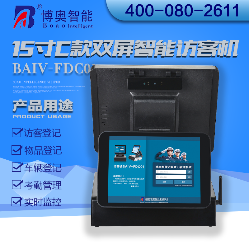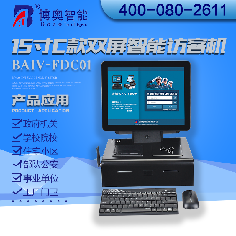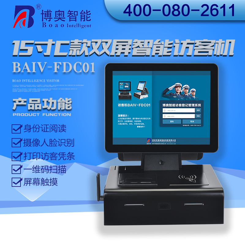? ? ? 15寸C款雙屏智能訪客機(jī)主要用在政府機(jī)關(guān)、關(guān)口、機(jī)場(chǎng)、軍隊(duì)、公安、法院、學(xué)校、事業(yè)單位、花園小區(qū)、高檔寫字樓、工廠等門衛(wèi)傳達(dá)室用來訪客登記管理;辦公大廳、營(yíng)業(yè)大廳、醫(yī)院等場(chǎng)所做為辦公設(shè)備