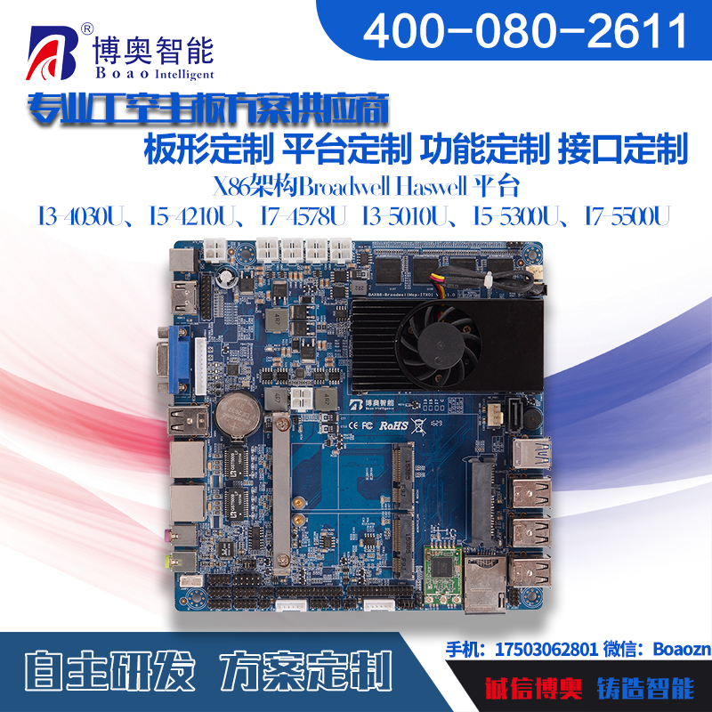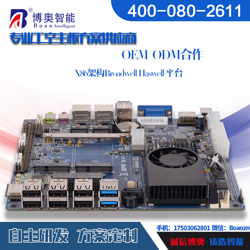 Intel Haswell和Intel Broadwell平臺主板是為我公司訪客機專用而且開發(fā)的工控主板方案,主板尺寸170mmX170mm,八層PCB板,工業(yè)級設(shè)計,它具有功能強大,集成度高,低功耗,高性能,多接口的特點,主板集成了12個USB接口 ,6個COM口,雙通大功率功放,最高支持15W,板貼4G/8G內(nèi)存及WIFI+BT功能,雙插針LVDS1、LVDS2,同時主板配有兩路DC24V輸出,兩路DC12V輸出,一路DC5V輸出;?Intel Haswell和Intel Broadwell平臺提供板形(標(biāo)準(zhǔn)板卡、非標(biāo)板卡)、功能接口等定制。