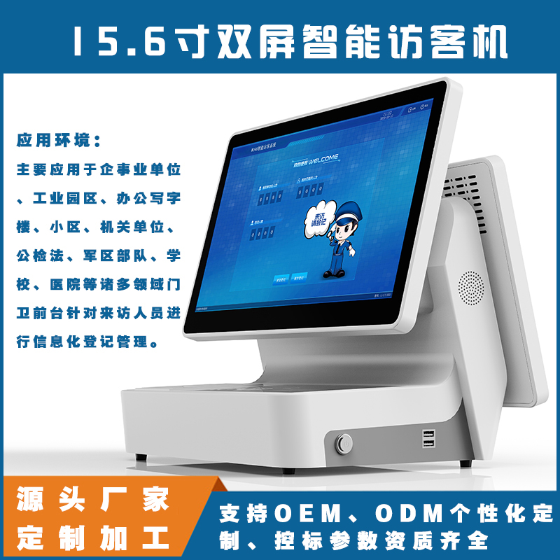 總的來說,15.6寸雙屏智能訪客機(jī)是一種高效、安全且用戶友好的訪客管理設(shè)備,適用于各種場所和場景的訪客登記和管理需求。
