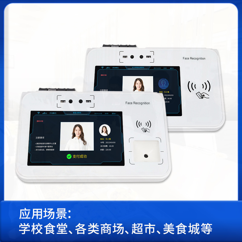 近些年,我司跟緊時(shí)代發(fā)展,充分了解市場(chǎng)需求后,決定在原有消費(fèi)機(jī)基礎(chǔ)上研發(fā)改進(jìn)新一代消費(fèi)機(jī),經(jīng)過(guò)技術(shù)工程師的日夜攻克以及充分的實(shí)驗(yàn)驗(yàn)證,全新的非接觸式IC卡的消費(fèi)機(jī)擴(kuò)展人臉識(shí)別消費(fèi)機(jī)正式面世。人臉智能+食堂消費(fèi)系統(tǒng)有效的解決了傳統(tǒng)的飯票或者飯卡丟失、補(bǔ)辦的繁瑣步驟,刷臉支付更為智能、廣泛、方便。而且人臉智能+食堂消費(fèi)更能凸顯作為機(jī)關(guān)單位與時(shí)代接軌的先進(jìn)性、高效性人臉識(shí)別消費(fèi)管理系統(tǒng)是當(dāng)前廣泛使用的收費(fèi)、食堂售飯系統(tǒng)。它采用了雙目結(jié)構(gòu)光,雙目200萬(wàn)寬動(dòng)態(tài)模組、雙目活體檢測(cè)人臉系統(tǒng),并結(jié)合現(xiàn)代管理方法設(shè)計(jì)而成。具有免接觸,無(wú)損耗,技術(shù)先進(jìn),系統(tǒng)擴(kuò)張性好,無(wú)需維護(hù),投資一步到位等優(yōu)點(diǎn),避免了因接觸IC卡的讀寫、油污、芯片裸露等缺陷造成的各種故障。是取代磁卡,無(wú)接觸式人臉的收費(fèi)機(jī),是廣大學(xué)校,企事業(yè)單位提高管理水平,實(shí)現(xiàn)電腦化的優(yōu)先選擇。