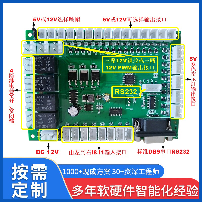 終端一體機專用多功能控制板現(xiàn)貨供應指示燈繼電器鎖控PWM電路板硬件方案免費定制人機交互軟件開發(fā)