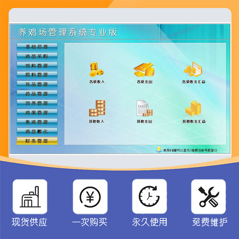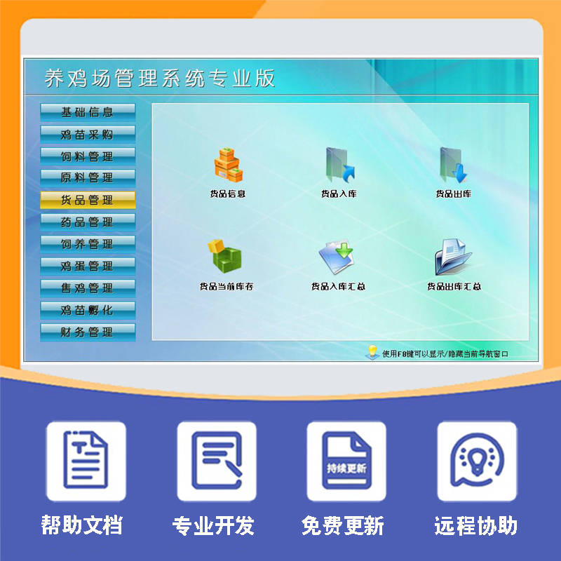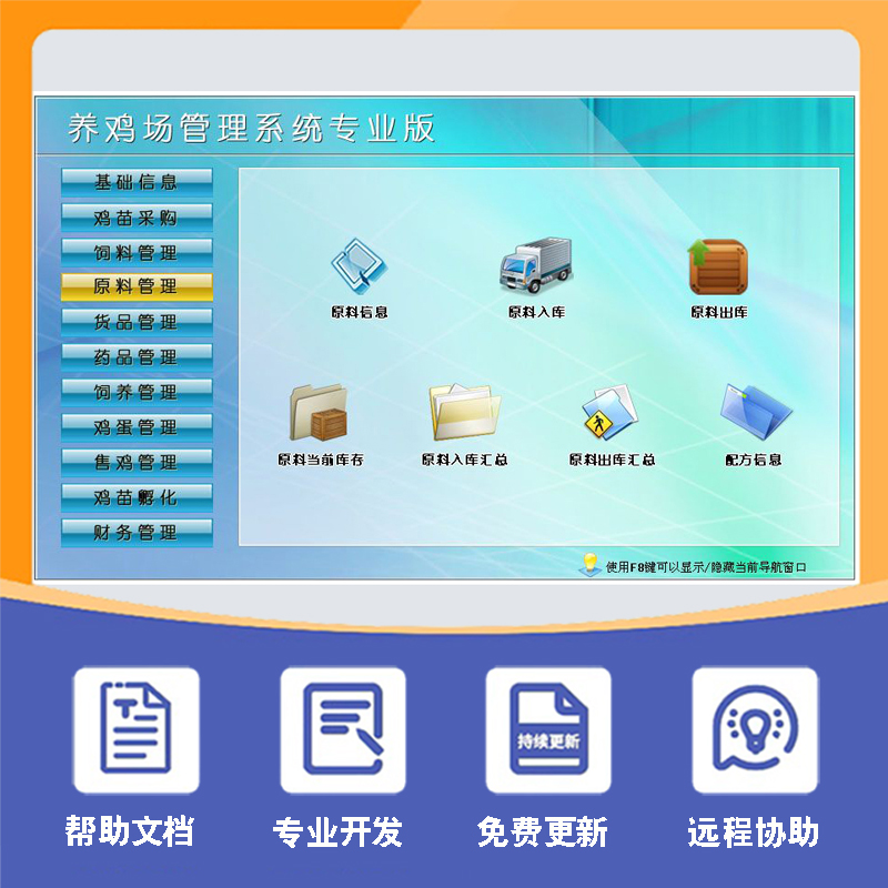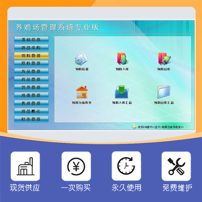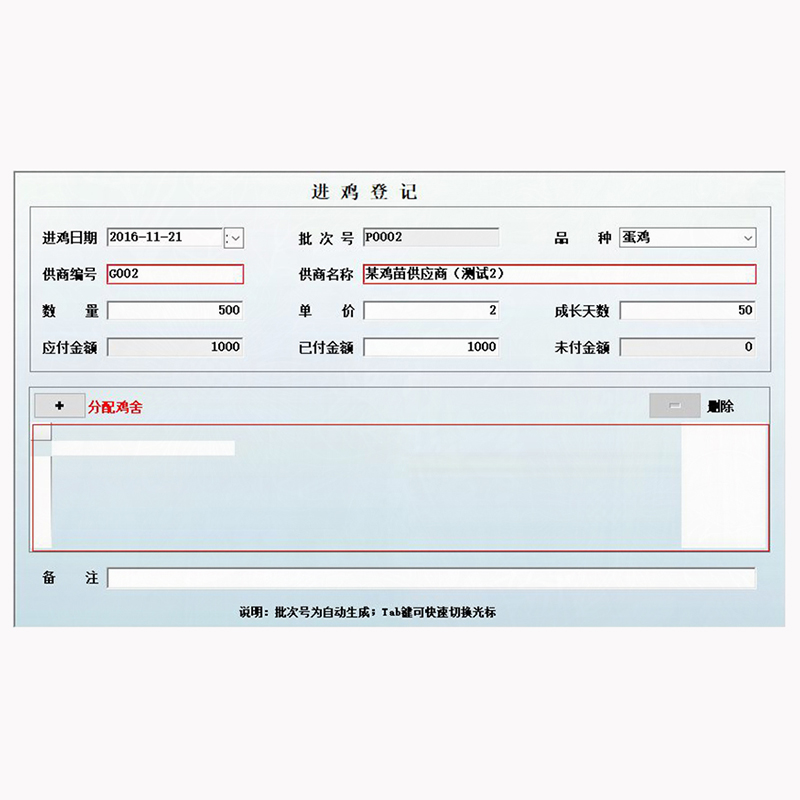 《養(yǎng)雞場管理系統(tǒng)專業(yè)版》是一款適用于中小型養(yǎng)雞場的管理軟件。主要包含基礎(chǔ)信息、雞苗采購、飼料管理、原料管理、貨品管理、藥品管理、飼養(yǎng)管理、雞蛋管理等功能。本管理系統(tǒng)多處具有快速輔助錄入功能,操作簡單,易學(xué)、易用;處理功能高效強(qiáng)大,是協(xié)助您的好幫手!